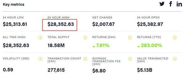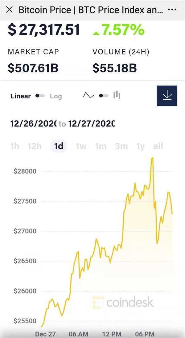 在短短12天时间里,比特币多个整数关口,今天更是一口气突破了27000美元和28000美元两个关口。