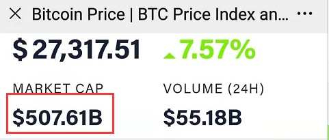 根据Coindesk的数据显示,在北京时间27日23时,比特币价格最高时已触及28352美元,最新市值5076亿美元,约3.3万亿元人民币,比贵州茅台(市值2.3万亿)还要高出1万亿元人民币。还相当于5个恒瑞医药,22个云南白药。