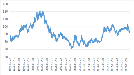 图1、美元指数走势(1995-2020Q3)