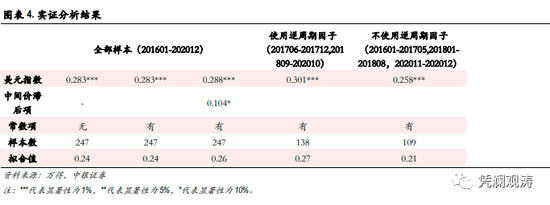 我们做了两组检验。一是美元兑人民币汇率变动滞后项是否影响当期人民币变动。结果显示人民币具有趋势强化效应,这不同于美指的均值回归效应。美指滞后项对当期美指变动影响显著为负,说明美指涨多了会跌,跌多了会涨。美指弹性估计值在含有滞后项的检验中未出现显著改变。二是分组比较弹性估计值是否因使用逆周期因子而出现显著变化。结果表明,虽然使用逆周期因子期间弹性较高,但也仅有0.3左右。而且,拟合值依然偏低(见图表4)。