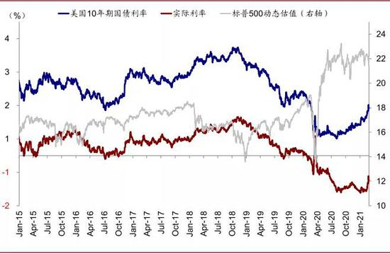 图表: 实际利率抬升也意味着实际的融资成本走高,对企业融资或杠杆都是如此,因此对于高估值、拥挤交易的部分边际上的影响较单纯通胀预期抬升时更大