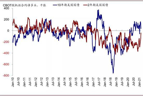图表: 过去一周,2年期国债投机性合约空头仓位大幅减少,10年期国债多头仓位大幅减少
