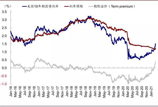 图表: 近期10年美债上行主要以期限溢价为主,是2018年以来首度转正…