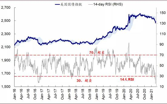 往前看,由于上周四盘中利率的快速走高很可能与一些交易层面因素(除触发关键止损位等)有关,且债券一度超卖严重,因此短期内,不排除利率水平在当前位置有所盘整消化。而且,由于资产价格中的预期往往先行,本轮美债利率上行的源头便是1月初民主党赢下参议院、以及2月初推动使用更为简单的预算调节程序通过1.9万亿美元财政刺激,因此当未来一两周财政刺激正式通过后,预期可能就基本兑现甚至计入充分了。不过,潜在风险来自一些交易层面因素下的连锁反应放大波动,值得密切关注。