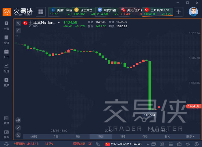 消息一出,3月22日土耳其货币里拉一度暴跌17%。有分析师警告称,这可能会引发新兴市场又一轮的货币危机。
