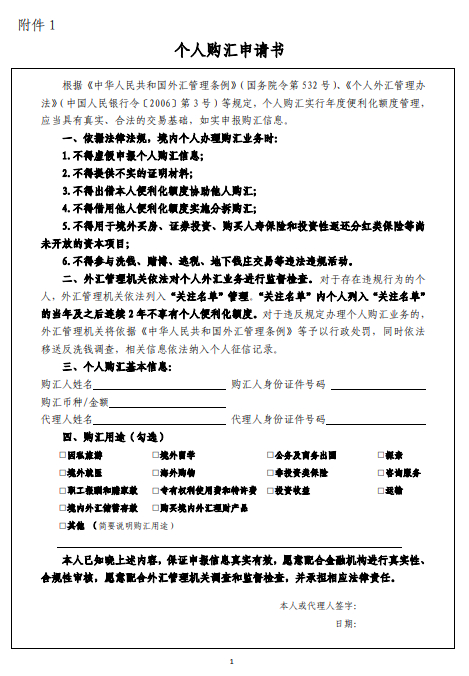 1.个人购汇申请书