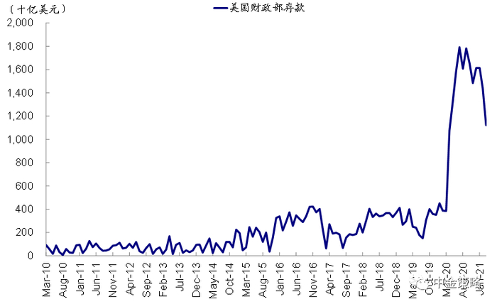 图表9: 目前美国财政部的现金水平依然处于高位(1.12万亿美元)