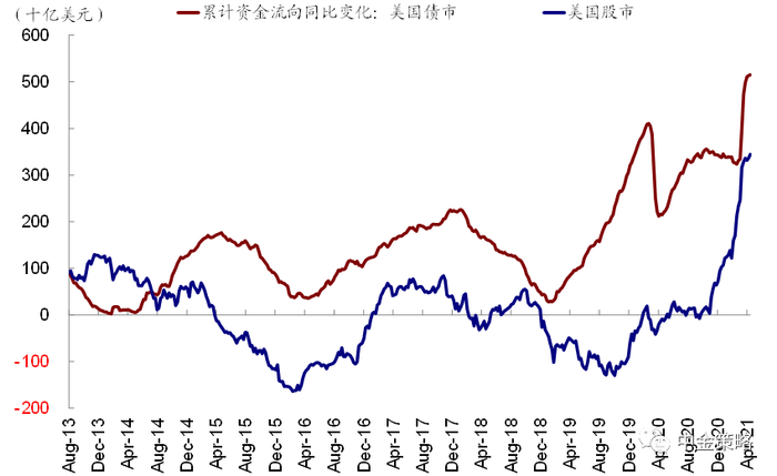 图表12: 与此同时,美债市场也继续流入,但速度明显趋缓,特别是美债利率大幅上行后
