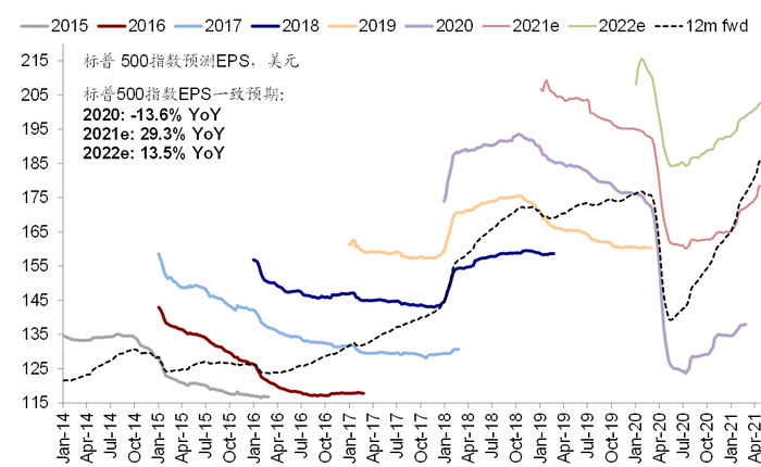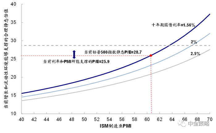 ►市场估值:美股估值高位持平。当前标普500指数28.7倍静态P/E高于增长(4月 MarkitPMI=60.1)和流动性(10年美债利率1.56%)能够支撑的合理水平(~25.9倍)。