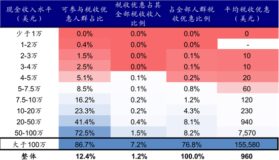 资料来源:Urban-Brookings Tax Policy Center Microsimulation Model,中金公司研究部