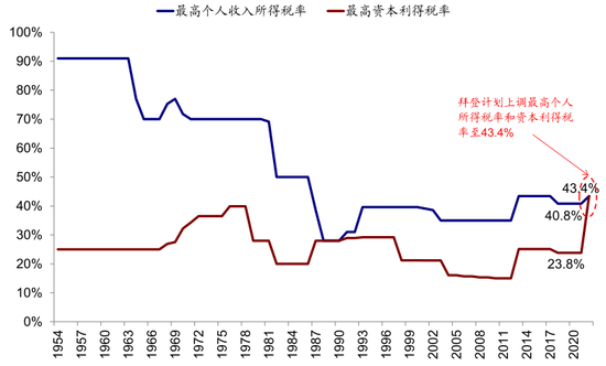 资本利得税:非主要税种,长期低于所得税;提高后将是近百年新高