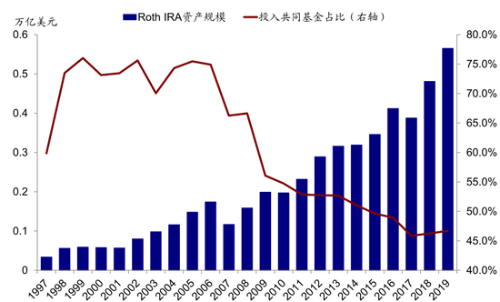 图表: Roth IRA也是如此,且资产规模扩张幅度更为明显