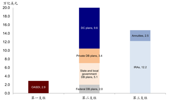 图表: 美国养老金体系主要以第二和第三支柱为主