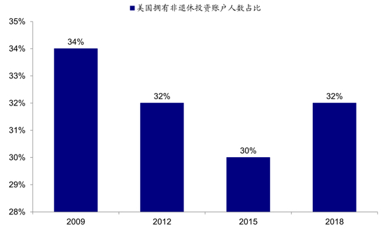 图表: 根据FINRA发布的2019年美国投资者研究报告显示,美国大约有三分之一(32%)的人群有非退休账户…