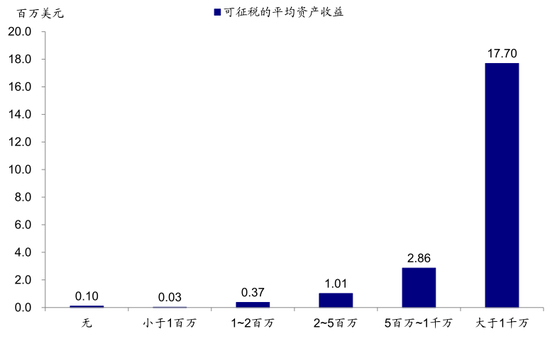 图表: 2018年各收入区间可征税的平均资产收益