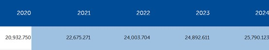 IMF最新的数据库显示,他们预测美国的名义GDP到2024年达到25.8万亿美元: