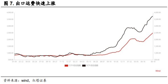 由于中国率先控制了疫情,疫情期间通过信贷补贴了企业,保住了企业和生产能力,所以从去年到现在,中国一直都是稳定全球通胀的中坚力量,全球的供应体系高度依赖于中国的生产,海运费用比疫情前涨了4-5倍都不止,和海运相关的个股涨幅也有好几倍。
