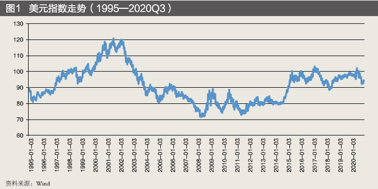 因此,美元指数的强弱直接对应的是欧元、日元等货币的弱强。美元指数走弱并不能代表美元货币体系受到了明显的冲击。美元强弱主要是受到美国和组成美元指数经济体的经济状况、货币和财政政策状况,以及美国与其他经济体汇率政策协调的影响。从历史上的美元指数走势来看,波动范围较大。换言之,美元指数强弱不能完全代表美元信用,世界上没有一种货币会一直走强,也没有一种货币会永远走弱。