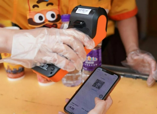 ▲2021年6月16日,北京欢乐谷一商户使用POS机对使用数字人民币的消费者进行扫码收款。图/新华社发