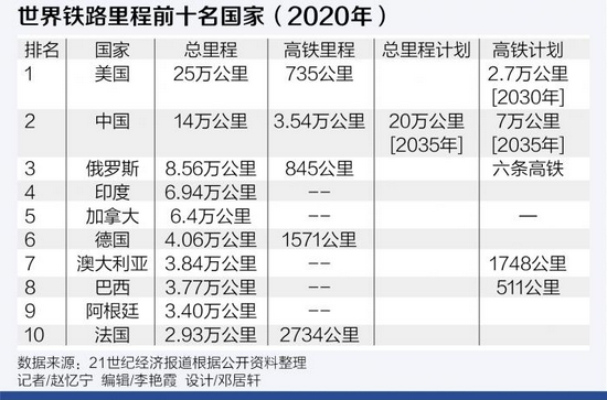 中国第一条铁路是建于1876年的吴淞铁路(全长14.5公里),这是一条英国人擅自修建的铁路,1877年清政府赎回并拆除。中国人自己修建的第一条铁路建于1901年,是詹天佑主持修建的新易铁路(高碑店—易县),全长42.5公里。相形之下,阿根廷第一条铁路于1857年开通,虽然只有不到10公里,但到1900年铁路迅速扩展到1.65万公里,而在1916年形成了以布宜诺斯艾利斯为中心的3.3万公里铁路网,成为居美国和加拿大之后美洲第三大铁路网,人均铁路里程超过美国。1930年阿根廷铁路线的扩建已达3.8万公里,到1940年上升到4.1万公里,1960年建成4.8万公里,这是阿根廷铁路网鼎盛时期。中国直到1975年才建成4.86万公里铁路。