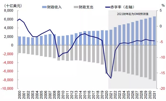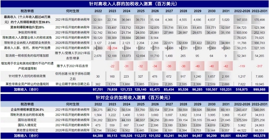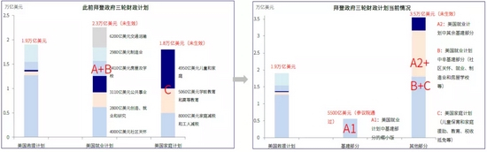 ► 一些中长期支出和税收计划会覆盖多个财年度,如此次5500亿美元新增基建、3.5万亿美元支出和加税计划都是覆盖5~8年的时间,需要单独立法,一旦通过会纳入到每年的预算安排中。