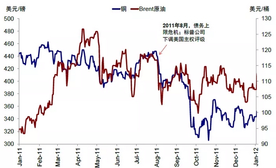 图表21:2011年期间,以原油和铜为代表的大宗商品下跌超10%