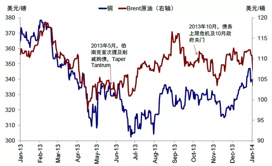图表22:2013年政府停摆期间,原油价格略有上涨,铜价略有下跌,整体影响并不显著