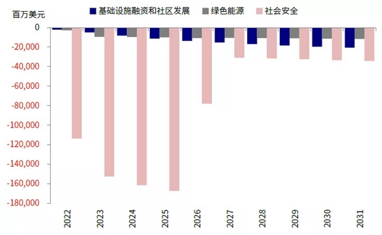 图表31:基础设施融资和社区发展、财政支出、绿色能源、及社会安全方面未来10年财政支出预测