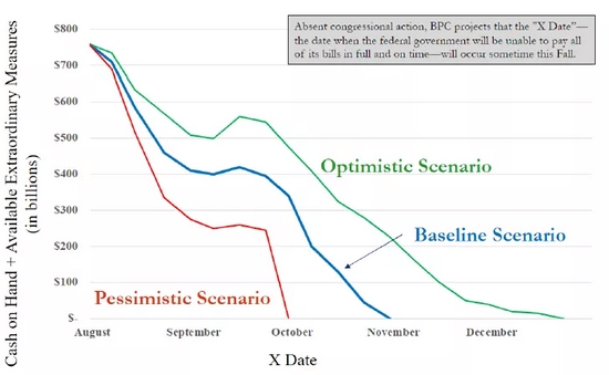 图表7:根据两党政策中心估算,最坏情形下,“X日”将于10月中旬到来