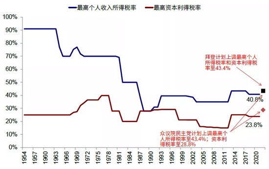 图表27:众议院民主党提议提高年收入在40万美元以上人群的资本利得税的税率从20%抬升至25%,个人所得税率从37%抬升至39.6%
