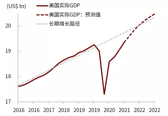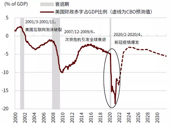 2.巨额财政刺激为启动加息创造条件。08年金融危机之后,发达国家经济恢复较慢,对QE政策的批判观点认为QE政策不但没有有效刺激经济,反而加剧社会贫富分化。当经济处于衰退期,财政刺激可能比货币刺激更加有效。最近几年,发达国家政策制定的思维似乎有所转向(《海外宏观专题报告:大财政重启,资产定价大变局》),更注重使用财政政策刺激经济。本次疫情衰退中的财政刺激规模远超08年金融危机时的规模,巨额财政刺激不但加速了经济复苏进程,也减少了经济对于宽松货币政策的依赖,为开启加息周期创造条件。