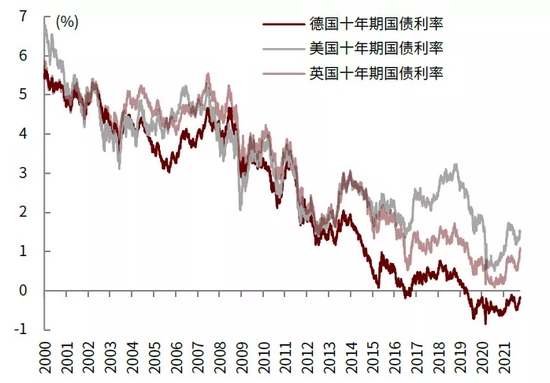 图表:主要发达国家经济体利率的期限溢价高度同步,导致长端利率高度相关
