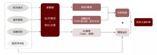 期限溢价受利率预期、通胀率、资产波动率与长端国债供求等多种因素影响。篇幅所限,本文重点讨论未来一两年内影响期限溢价的关键边际变化——美联储Taper政策与债券供给。