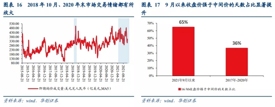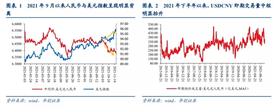 交易面可见本轮汇率升值过程中交易情绪起到一定助推。以美元兑人民币即期成交量衡量交易情绪,近期即期交易量为汇改后最长的放量期;以16:30收盘价强于开盘中间价的天数占比来衡量主交易时段汇率走强的程度,也可见9月以来该比值明显高于过去4年水平,反映每日盘间基于供求的交易是近期人民币汇率走强的主要因素。
