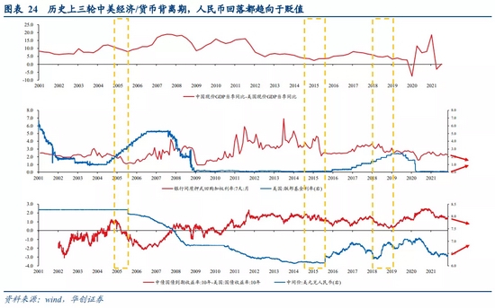 2022年中美或呈经济、货币双背离格局,2022年中美GDP增速差或将收窄至1989年以来最小;货币层面美联储明确紧缩而中国央行稳中略松。历史来看,在此环境下人民币汇率趋向于贬值。