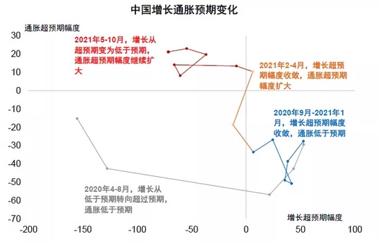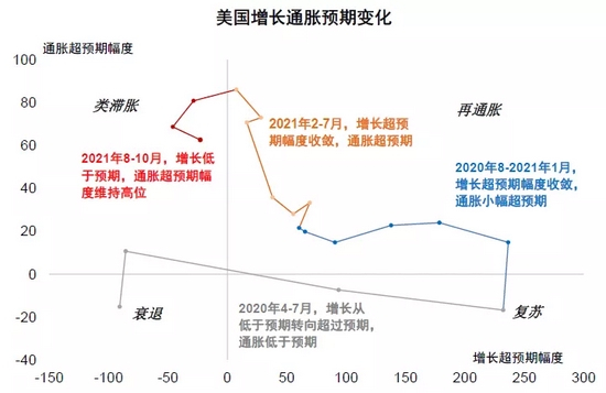 首先,超预期的通胀将使得市场和美联储重新评估通胀风险,进而推升加息预期。我们在年度展望报告《通胀潮起,踏浪而行》中指出,无论是从短期还是中期维度,我们都已经看到推动通胀持续上行的因素。美联储主席鲍威尔于11月30日的参议院银行业委员会上表示通胀不再是“暂时”的,并暗示在12月的议息会议上可能决定加速购债缩减。结合今年以来的历次FOMC会议来看,美联储对通胀的看法一直在随数据动态调整,逐步在朝着通胀风险上升且可能比想象的更具持续性的方向转变。在《“大通胀”对当下的启示》中,我们指出宽货币财政双宽松是推升通胀中枢持续上行或高位运行的重要推动力。叠加多重供给冲击,房租和工资的持续上涨,以及正在形成的工资-物价通胀螺旋,我们认为市场和美联储可能仍在低估通胀尤其是核心通胀风险。11月初的FOMC政策声明只给出了未来两个月的购债额度,对两个月后的缩减计划给出了足够的灵活性和调整空间,例如,强调将根据经济前景随时调整购债缩减的节奏。这表明美联储可能仍在试水,对未来的通胀风险和就业市场前景并未有十分确切的判断,有随时调整政策的可能。倘若通胀上行风险如我们的预期持续加剧,市场的加息预期将持续升温。