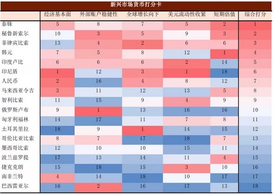 新兴市场外汇展望:在以上三个指标的基础上,叠加新兴市场宏观金融风险及稳健性,我们认为泰铢、秘鲁新索尔、菲律宾比索和韩元面临较低风险,印度卢比、印尼盾和人民币风险相对可控,而东欧国家货币、南非兰特、巴西雷亚尔则面临较大风险。