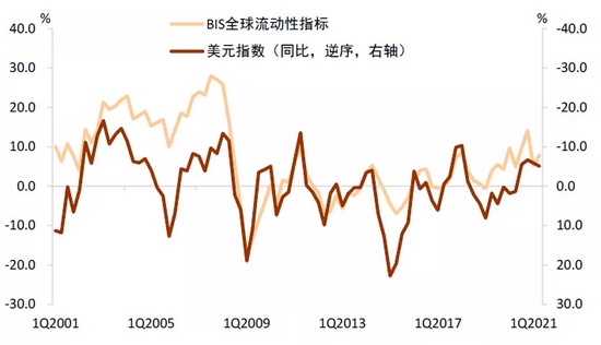 图表7:全球经济增长动能放缓时往往伴随美元走强
