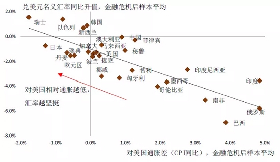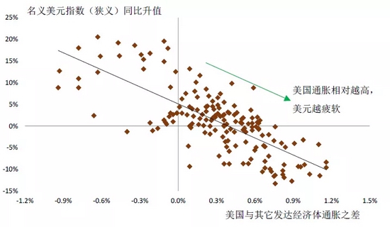 图表15:当美国相对其它国家通胀中长期内更高时,美元往往有贬值趋势