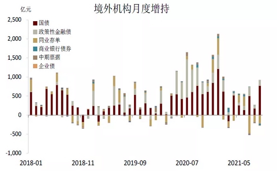 其次,CGBs正在成为收益资产。发达市场中,德国日本等国债收益率仍在0附近,美国十年期利率目前仍在1.5%附近;反观整个人民币利率曲线的收益率,无论是动态还是静态收益,仍具有显著吸引力。另一方面,相较于高收益新兴市场国家(疫情以来,新兴市场利率中枢显著下行,削弱了其利差优势),中国国债能够提供较高的风险调整后的收益,且汇率风险相对较小。中国国债海外需求大致分三类:1.央行和主权财富基金;2.追踪指数的共同基金;3.绝对收益基金。前两类投资者对利率因素不甚敏感,因而其国债持有较有粘性。自“债券通”成立以来,这两类持有者占绝对多数比例。往前看,即使中美长端利率或有所收窄,我们认为国债的海外持有仍将有一定粘性。