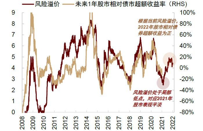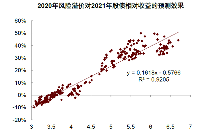 图表6:在2021年,风险溢价对未来1年中国股债超额收益预测准确度高达92%