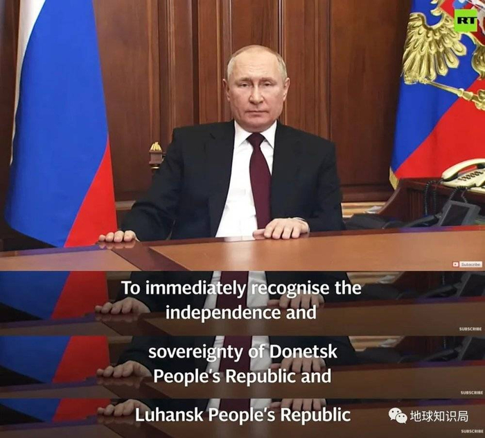同时,普京签署了总统令,宣布承认“顿涅茨克人民共和国”和“卢甘斯克人民共和国”,并签署俄罗斯与”顿涅茨克人民共和国“和”卢甘斯克人民共和国“的友好合作互助条约,同时命令俄罗斯军队在那里执行“维持和平”的任务。