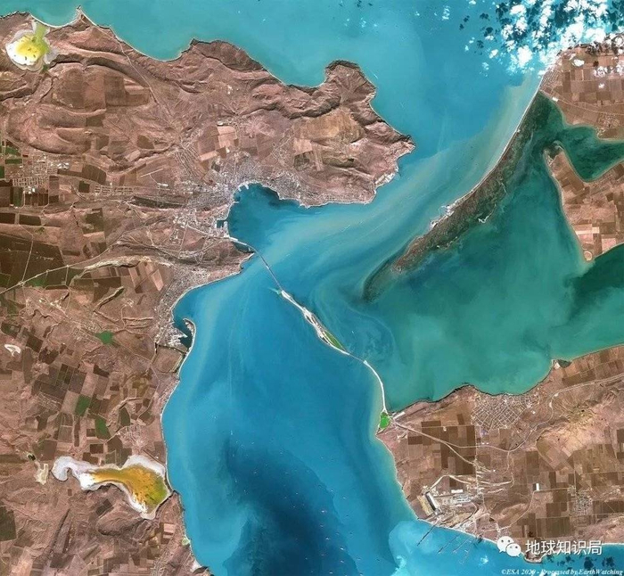 刻赤海峡和刻赤海峡大桥(图:Sentinel-2)▼