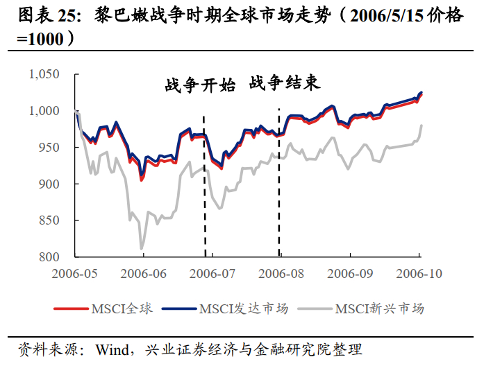 整体来看,黎巴嫩战争期间,白银和铅表现最好,中国香港、法国和日本股市次之,A股跌幅较为显著,原油价格初期快速冲高但之后有所回落。
