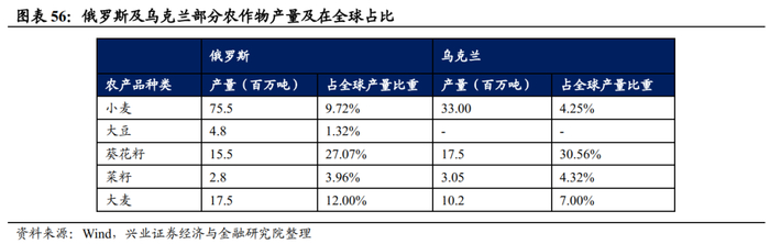 俄罗斯和乌克兰是全球重要的产粮国,二者小麦产量在全球占比超过10%,战争导致的减产和欧美制裁或使全球粮价保持景气上行,利好种植业及种子板块。此外,2020年俄罗斯钾肥产量约为760万吨,占全球产量的18%,故欧美潜在的对俄罗斯的制裁或牵连其钾肥出口