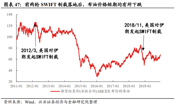 欧美将尽可能限制对俄制裁所造成的能源供应冲击。尽管欧美对俄罗斯能源方面实施的制裁已提上议程,但从欧美自身的利益出发,其过分制裁俄罗斯原油出口的可能性较低。美国方面,拜登多次强调要保证将能源制裁对全球能源市场的影响降到最低。并且考虑到美国当前通胀压力已经处于历史高位,而拜登严厉制裁俄罗斯原油出口将进一步加剧美国通胀压力,我们认为美国“搬起石头砸自己的脚”的可能性较低,美国当前未禁止本国公司购买俄罗斯能源且宣布联合盟友共同释放6千万桶战略储备石油。欧洲方面,其在原料及燃料进口上对俄罗斯依赖度较高,且不像美国当前尚且有疫后财政刺激“余温”的支撑,制裁后欧洲衰退概率更大,故其限制俄罗斯原油出口的可能性甚至更低。此外,参考2018年美国对伊朗的制裁,尽管伊朗遭剔除SWITF系统,但中国大陆、印度和日本等8个国家和地区却获得伊朗原油进口的临时豁免。因此本轮冲突中,对俄罗斯原油依赖极高的国家所遭受供给冲击或有限。