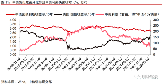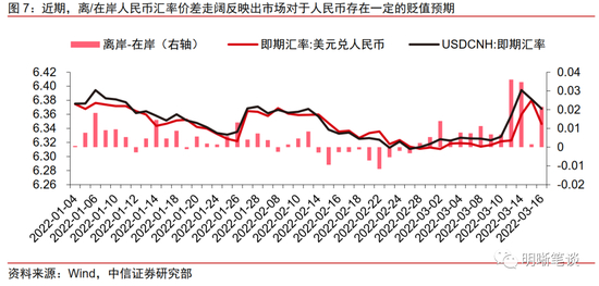 短期来看,美元指数给人民币带来的压力有所缓和。当前,美元指数或已进入盘整期,原因有三:一是美联储第一次加息靴子已经落地,加息预期对于美元指数的支撑力削弱;二是俄乌危机导致的市场恐慌情绪缓和,避险逻辑对于美元的支撑减小;三是随着欧央行加速缩表,欧美央行在货币政策上的差异有所收敛。