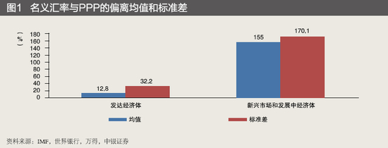 PPP的计算方式是一揽子可贸易货物的两种货币计价比值。与短期分析框架的海量信息汇集不同,PPP理论化繁为简,主要切入点为国别间的物价水平差异(绝对PPP)或者通胀趋势差异(相对PPP)。根据一价理论,如果一个国家的主权货币较PPP汇率低估,即该国商品较美国(美元为国际关键货币)商品便宜,两者之间存在套利空间,该国商品会被运送至价格更高的美国。结果是,该国对内减少商品供给,进而提高国内通胀压力,同时,通过增加对美商品供给来提高美国通缩压力。上述套利行为既会增加本国贸易顺差导致名义汇率有升值压力,也会使本国的PPP贬值,促使价差收敛;反之则结果相反。实践中,市场并不是完全有效。