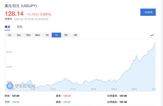 本周二亚洲交易时间,日元汇率加速下跌,日元兑美元跌破128日元重要关口,日间跌幅超1%,创一周最大跌幅。在经历周二下跌后,日元兑美元已连跌13天,创1971年有数据以来最长连跌。