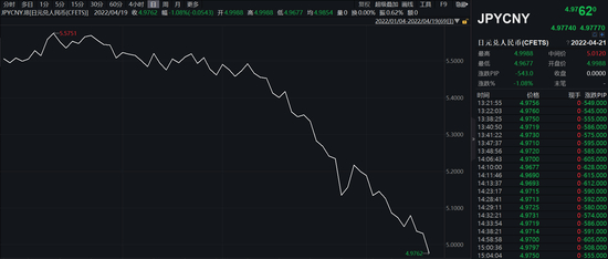 日元兑人民币汇率也持续下跌,日元兑人民币周二跌破0.05元关口。如果从年初开始计算,日元汇率相对人民币贬值幅度超10%。如果跟2019年最高点比,日元兑人民币已经贬值了27%。